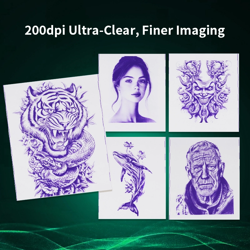 کاغذ تاتو از اقتصادیترین فناوری حرارتی استفاده میکند، فقط کافی است کاغذ حرارتی A4 را دوباره پر کنید، بدون کارتریج جوهر، بدون ریبون