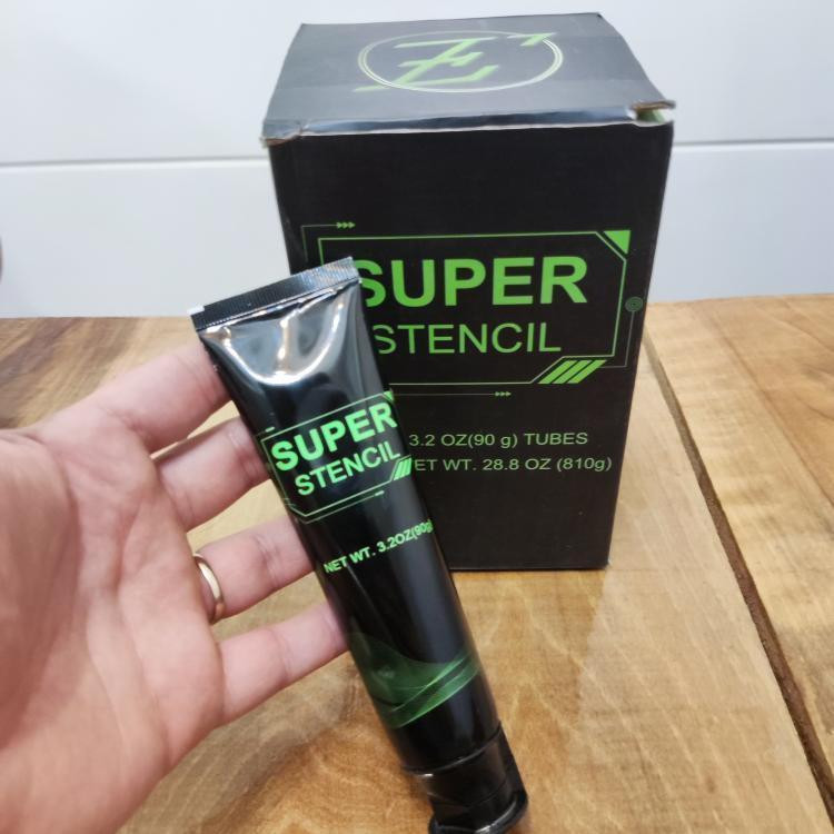 -EZ Super stencil -مقدار کمی از محلول EZ Super Stencil را در دستکش بریزید. به طور یکنواخت در محل آماده شده پخش می شود تا زمانی که سطح مرطوب شود اما خیس نشود. هنر استنسیل را روی سطح اعمال کنید، 3 تا 5 ثانیه نگه دارید. شابلون را بردارید و اجازه دهید حدود 5دقیقه بماند و به هیچ عنوان دیگه پاک نمیشه و با خیال راحت کار کنید